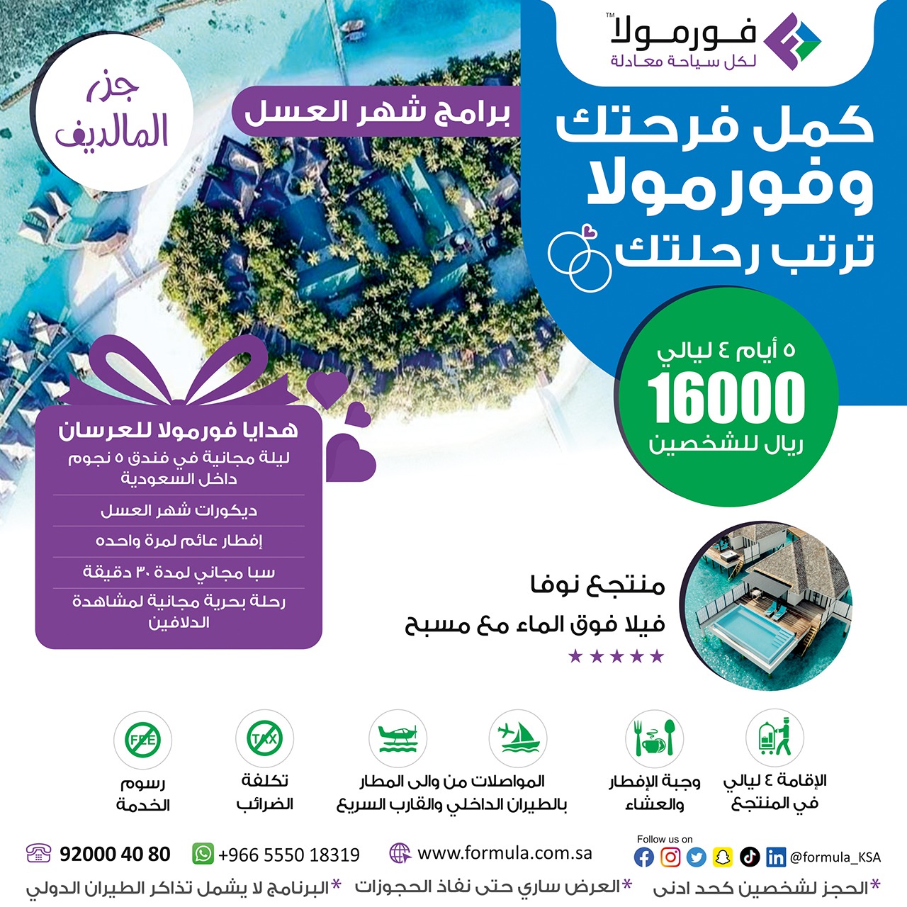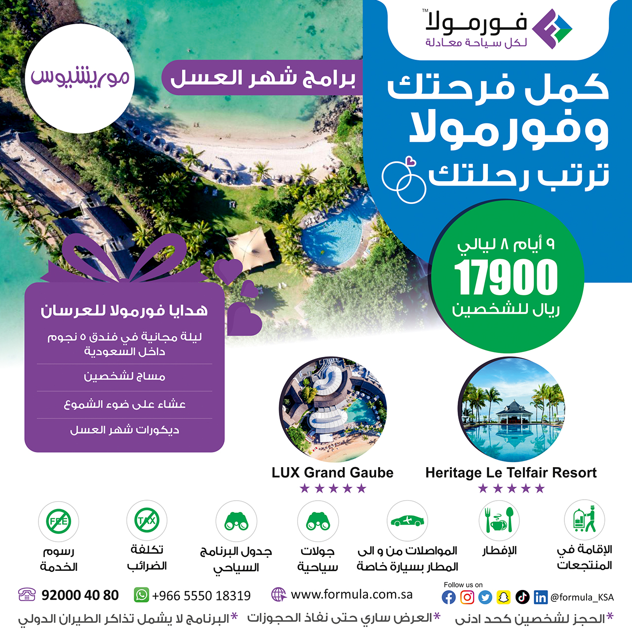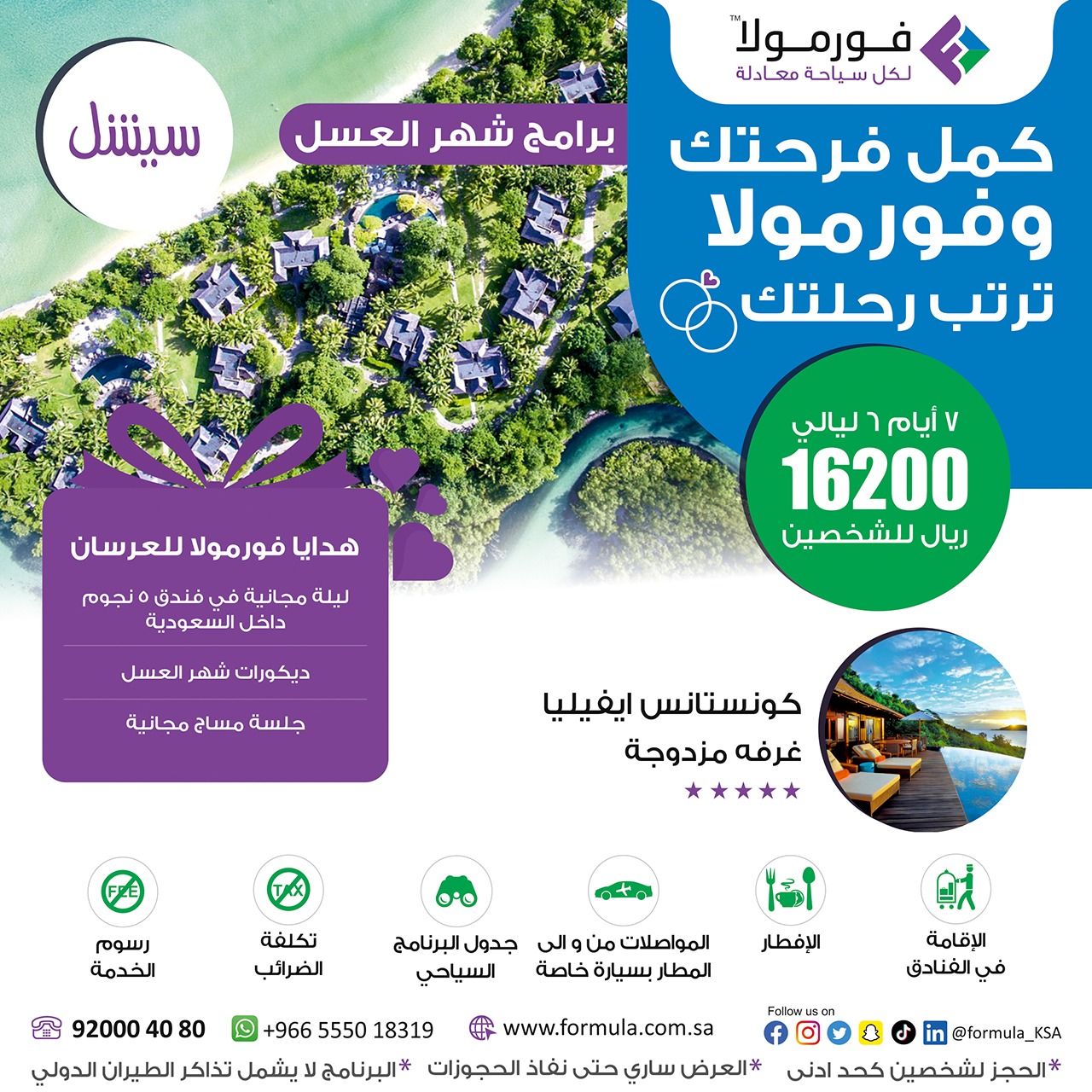 احصل على هدايا فورمولا للعرسان عند حجز إحدى برامج شهر العسل
