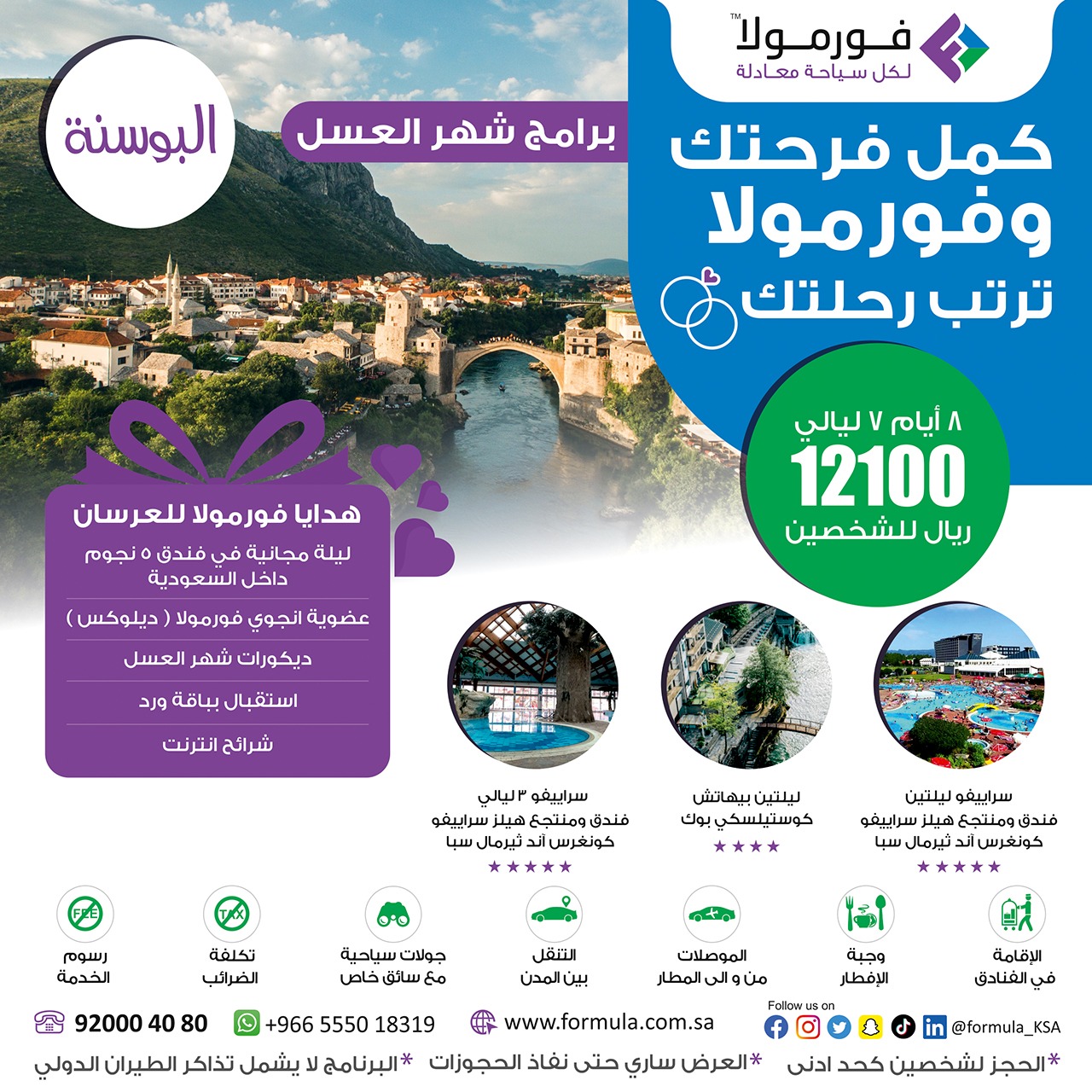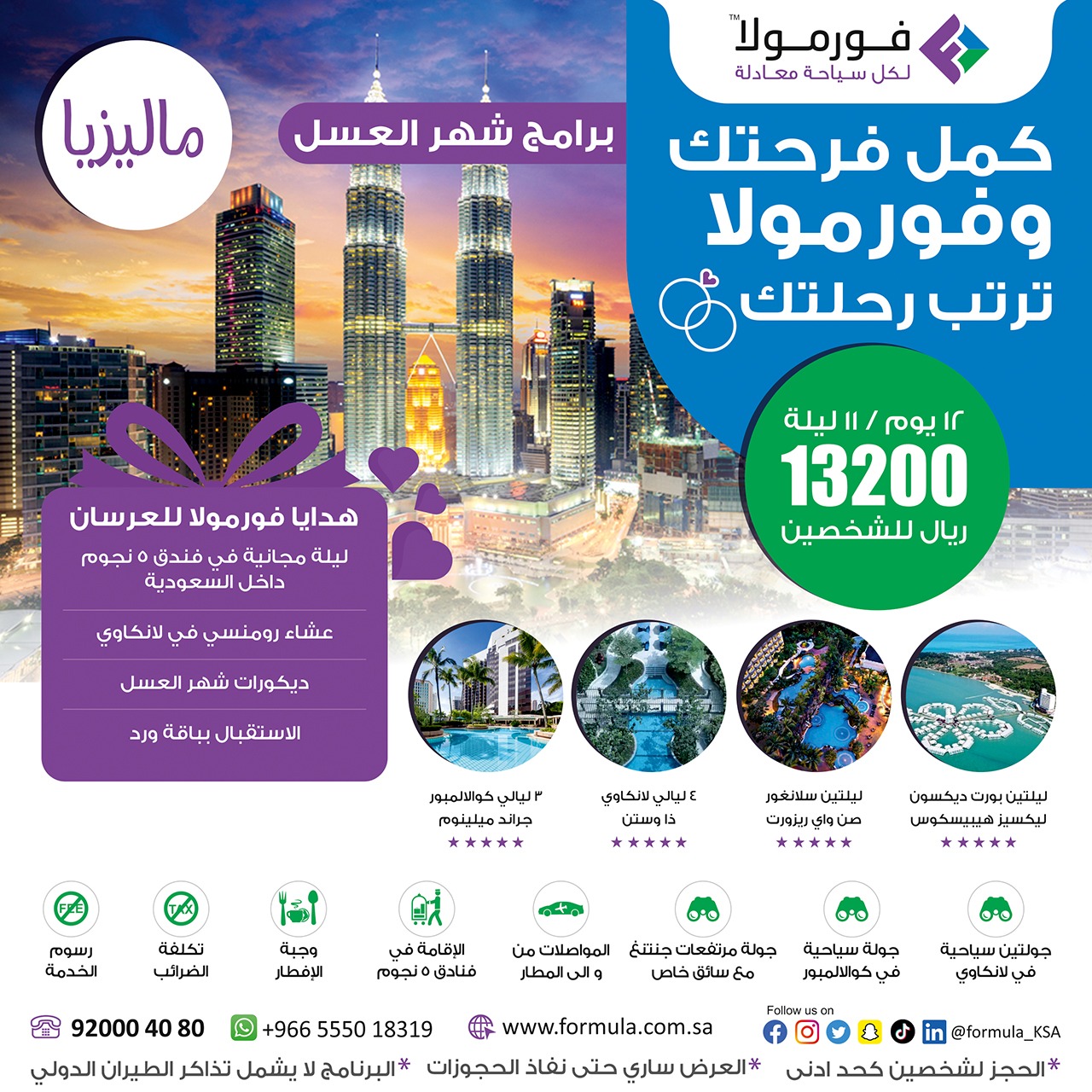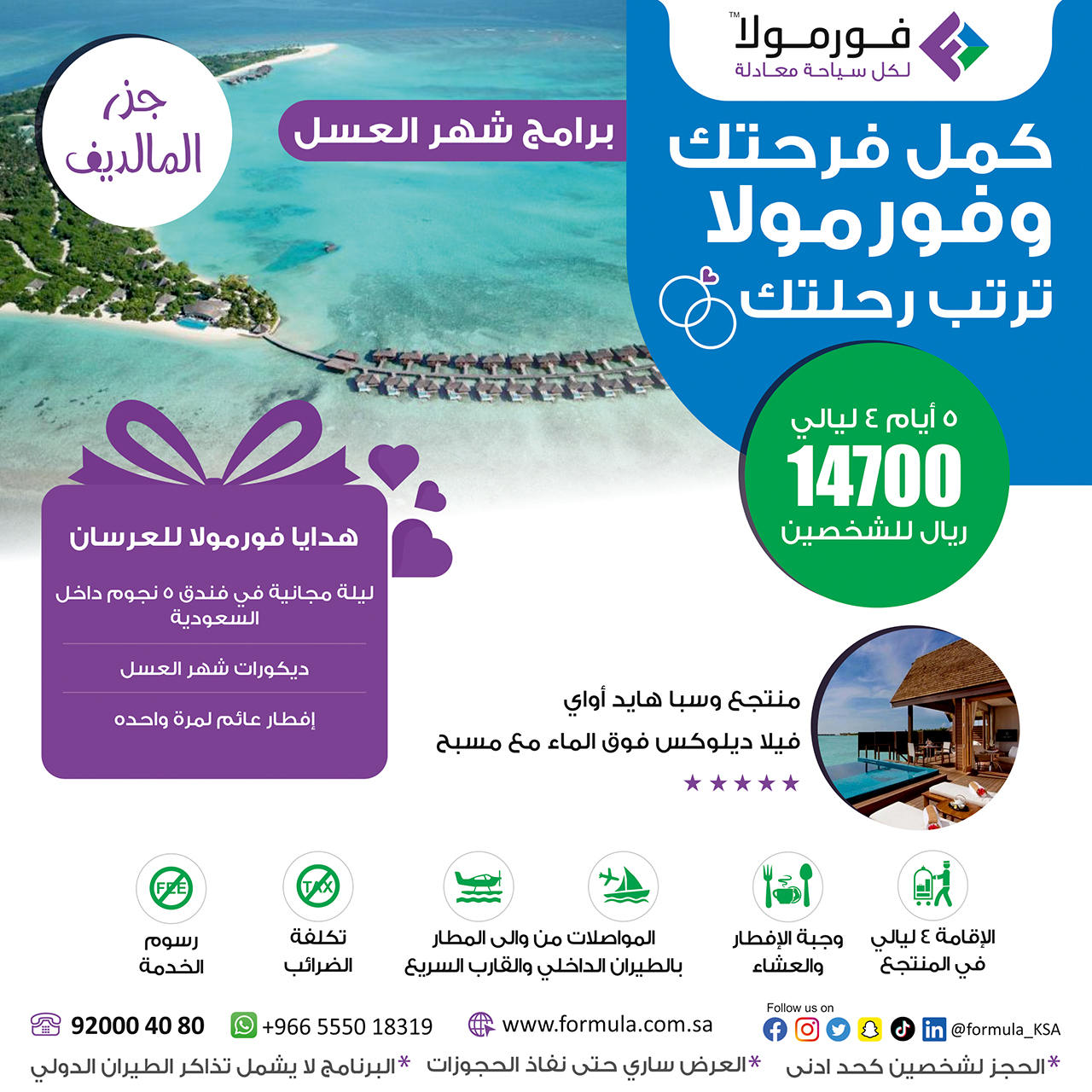 احصل على هدايا فورمولا للعرسان عند حجز إحدى برامج شهر العسل